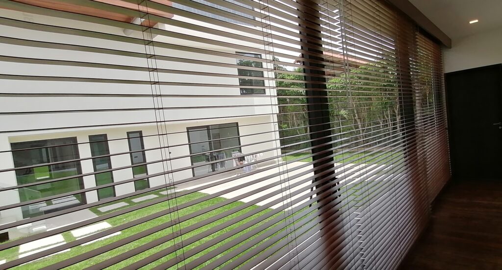 Estan compuestas por lamas de madera que permiten regular con precisión la entrada de luz y la privacidad mediante un sistema de rotación y elevación.